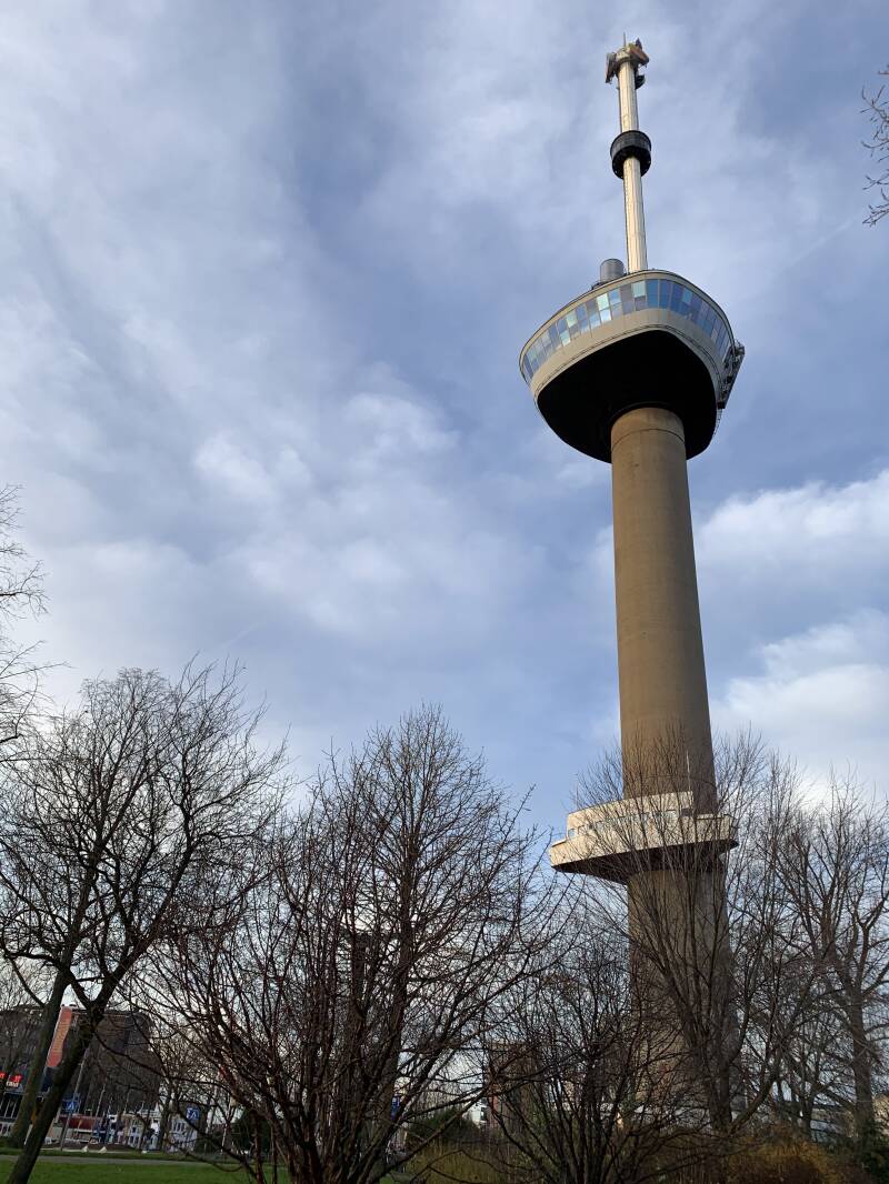 Euromast is an observation tower in Rotterdam, Netherlands, designed by Hugh Maaskant constructed between 1958 and 1960. It was specially built for the 1960 Floriade, and is a listed monument since 2010. The tower is a concrete structure with an internal diameter of 9 m (30 ft) and a wall thickness of 30 cm (12 in). For stability it is built on a concrete block of 1,900,000 kg (4,200,000 lb) so that the centre of gravity is below ground. It has a "crow's nest" observation platform 96 m (315 ft) above ground and a restaurant. Originally 101 m (331 ft) in height it was the tallest building in Rotterdam. It lost this position to the high-rise of Erasmus MC (113.5 m, 372 ft) which was completed in 1968, but regained it when the Space Tower was added to the top of the building in 1970, giving an additional 85 m (279 ft). Euromast was the highest building of the Netherlands, but was surpassed by De Zalmhaven, also in Rotterdam, in 2021. It is also a member of the World Federation of Great Towers.