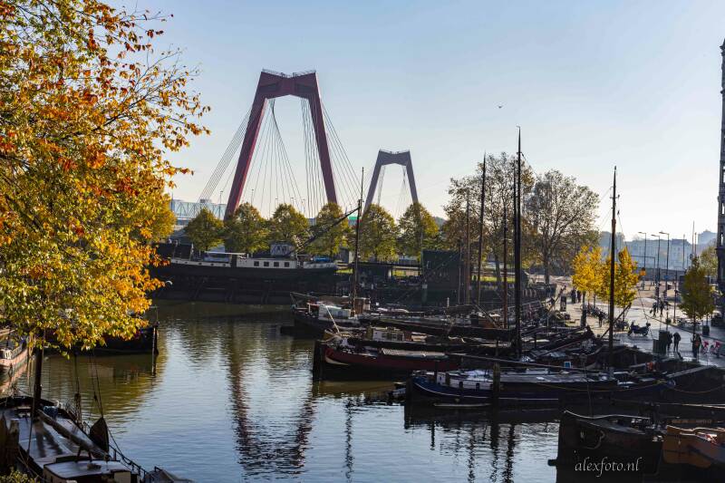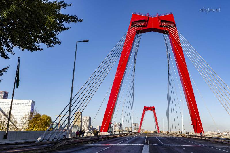Willemsbrug is a bridge over the Nieuwe Maas in the center of Rotterdam. The bridge connects the right bank of the Nieuwe Maas to the Noordereiland. The current bridge is the second Willemsbrug. The first was designed by C.B. van der Tak, was opened in 1878 and named after King William III. The second bridge was designed by Cor Veerling and was completed in 1981.